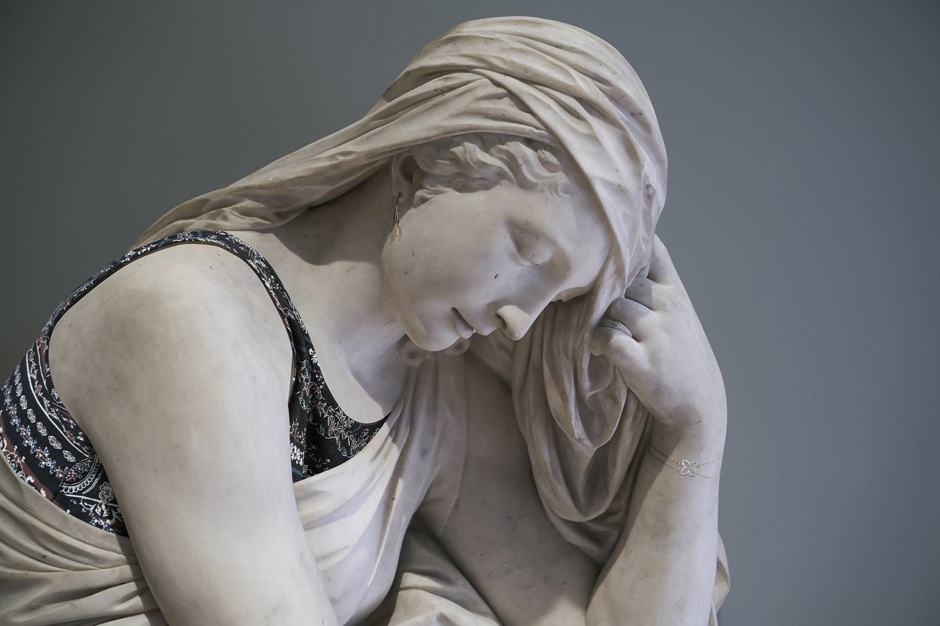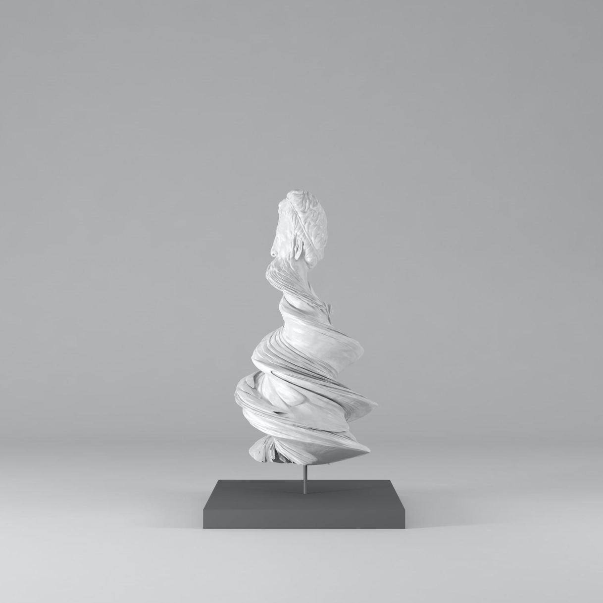 In his work, which explores our perception of time, Leo Caillard “tries to show what we think we know in a different way, in order to challenge our assumptions and create a dialogue between eras.” In his ongoing series Wave Stone, he sculpts marble statues featuring oscillating curves at their centers, allowing familiar figures to be seen from a new perspective.